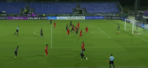 第20分钟,越南U23任意球被顶出,阮泰山抽射偏出